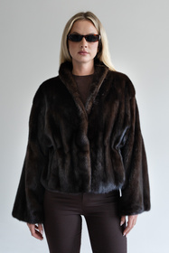 Brązowe futro z grzbietów norek z kapturem