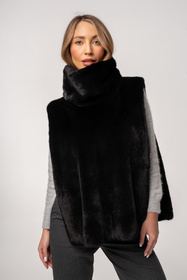 Czarne futro w stylu poncza z naturalnych norek