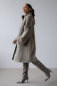 Kożuch ze skór merynosów w kolorze delikatnej szarości