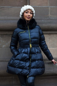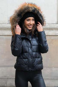 Kurtka damska puchowa z obszyciem z naturalnego futra jenota w kolorze czarnym- Kesha