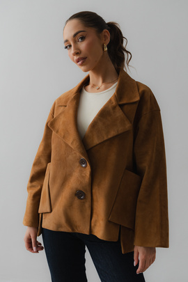 Brązowa zamszowa kurtka skórzana Irem