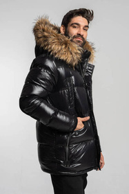Czarna puchowa kurtka Paquito z futrzanym obszyciem