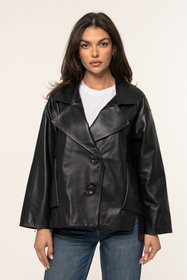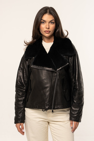 Czarna kurtka skórzana Adele z futrzanym kołnierzem