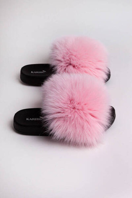 Klapki damskie z naturalnym futrem z jenota - edycja limitowana