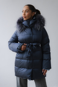 Parka damska obszyta naturalnym futrem norek oraz futrem lisów srebrnych.