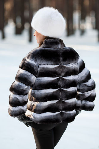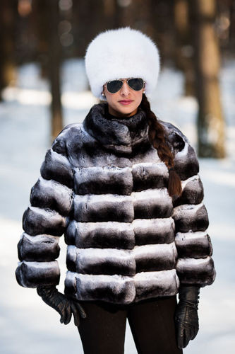 - Naturalne futro wykonane z najwyższej jakości futra z szynszyli naturalnych. Jest to klasyka oraz elegancja w najwyższym wydaniu. Posiada kieszenie.
