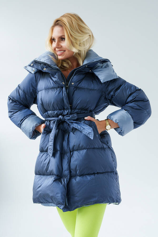 - Pikowana kurtka Marcela puchowa włoskiej marki Flo&Clo wykonana z najwyższej jakości materiałów. Wygodny i efektowny fason w odcieniu granatu z kontrastującą błękitna podszewką.