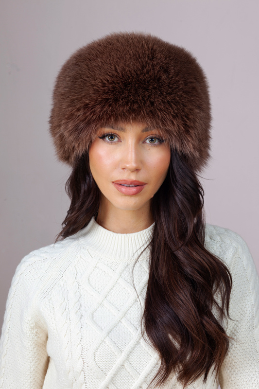 - Toczek z naturalnego futra lisa w kolorze brązowym.