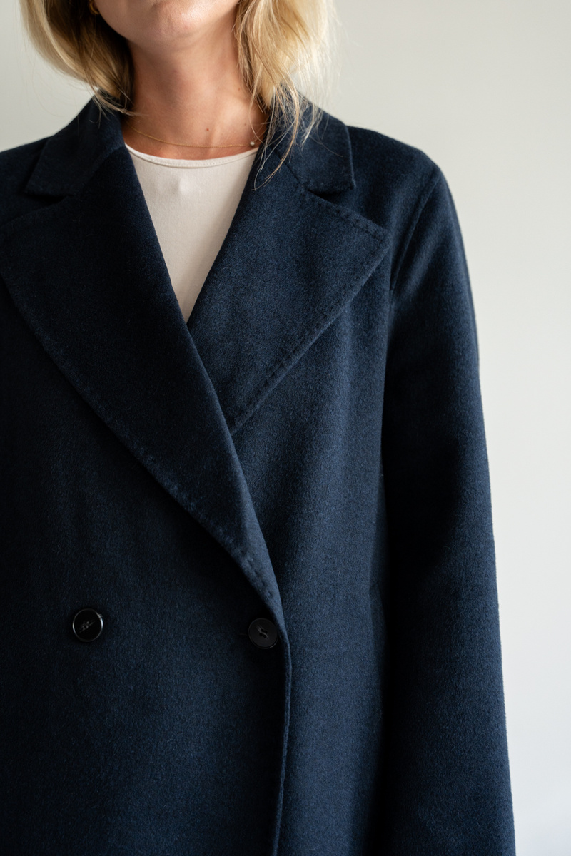 Kaszmirowy płaszcz z jedwabiem w kolorze granatu