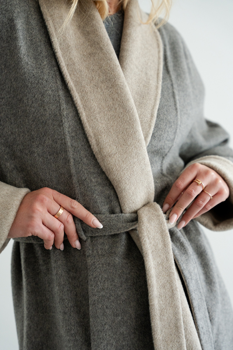 Kaszmirowy płaszcz w kolorze szaro beżowym