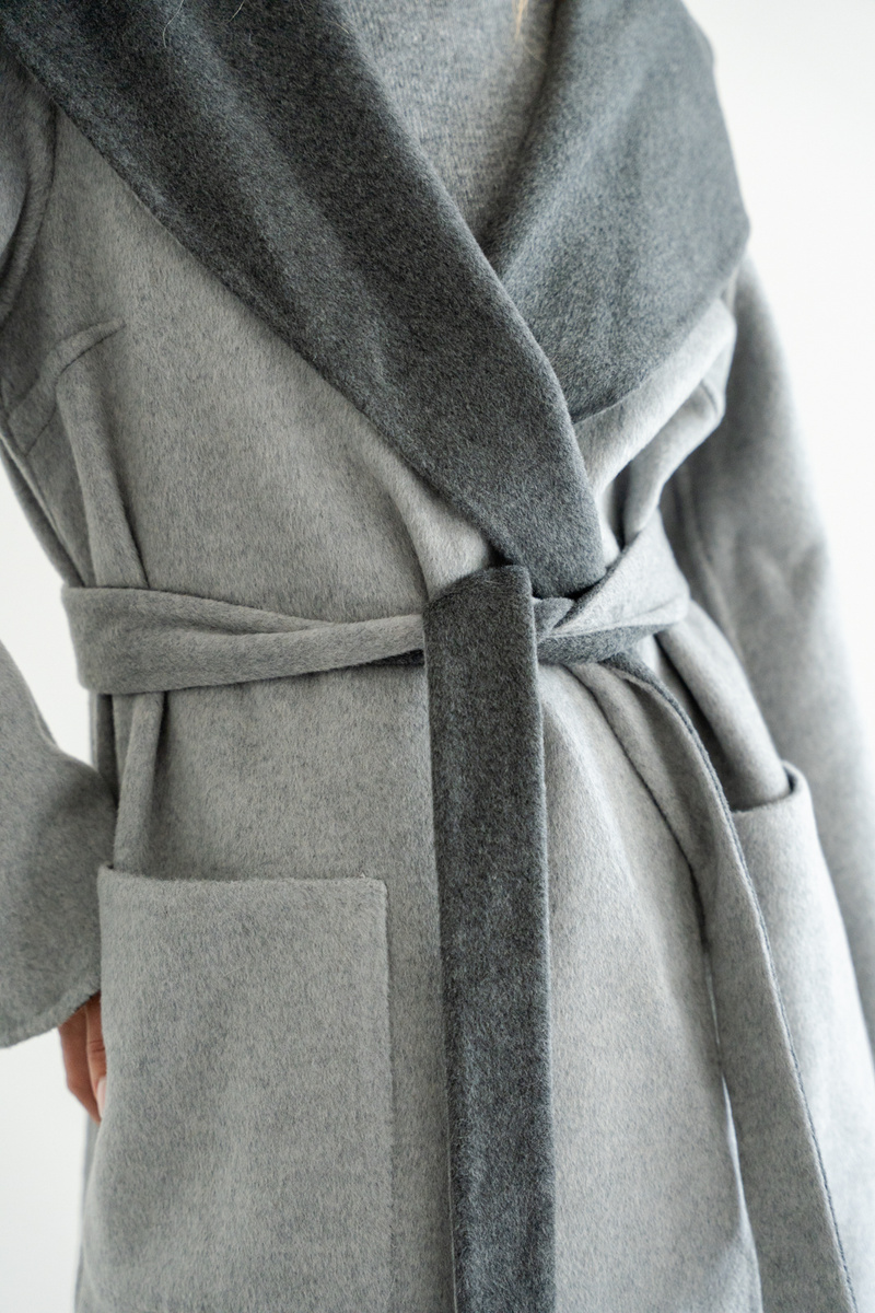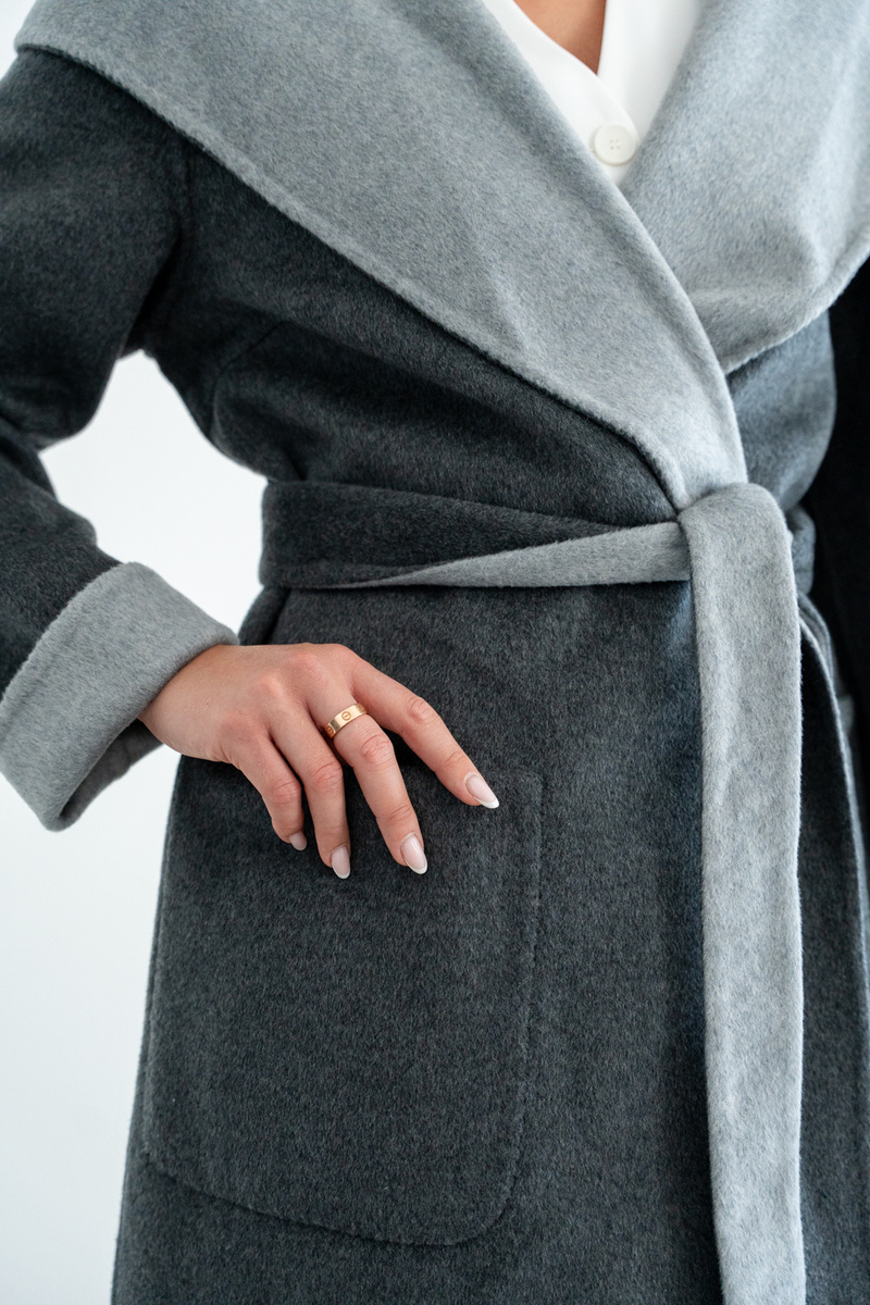 Kaszmirowy dwustronny płaszcz w kolorze szarym