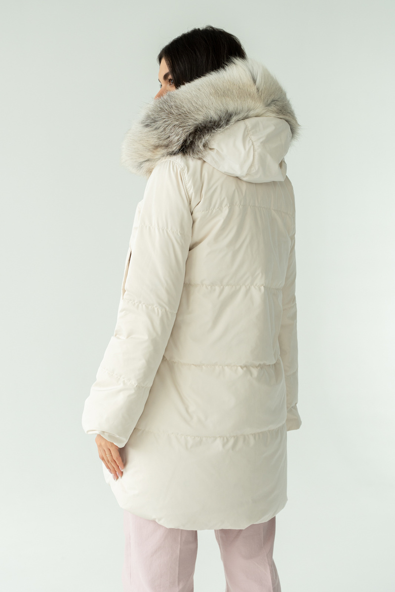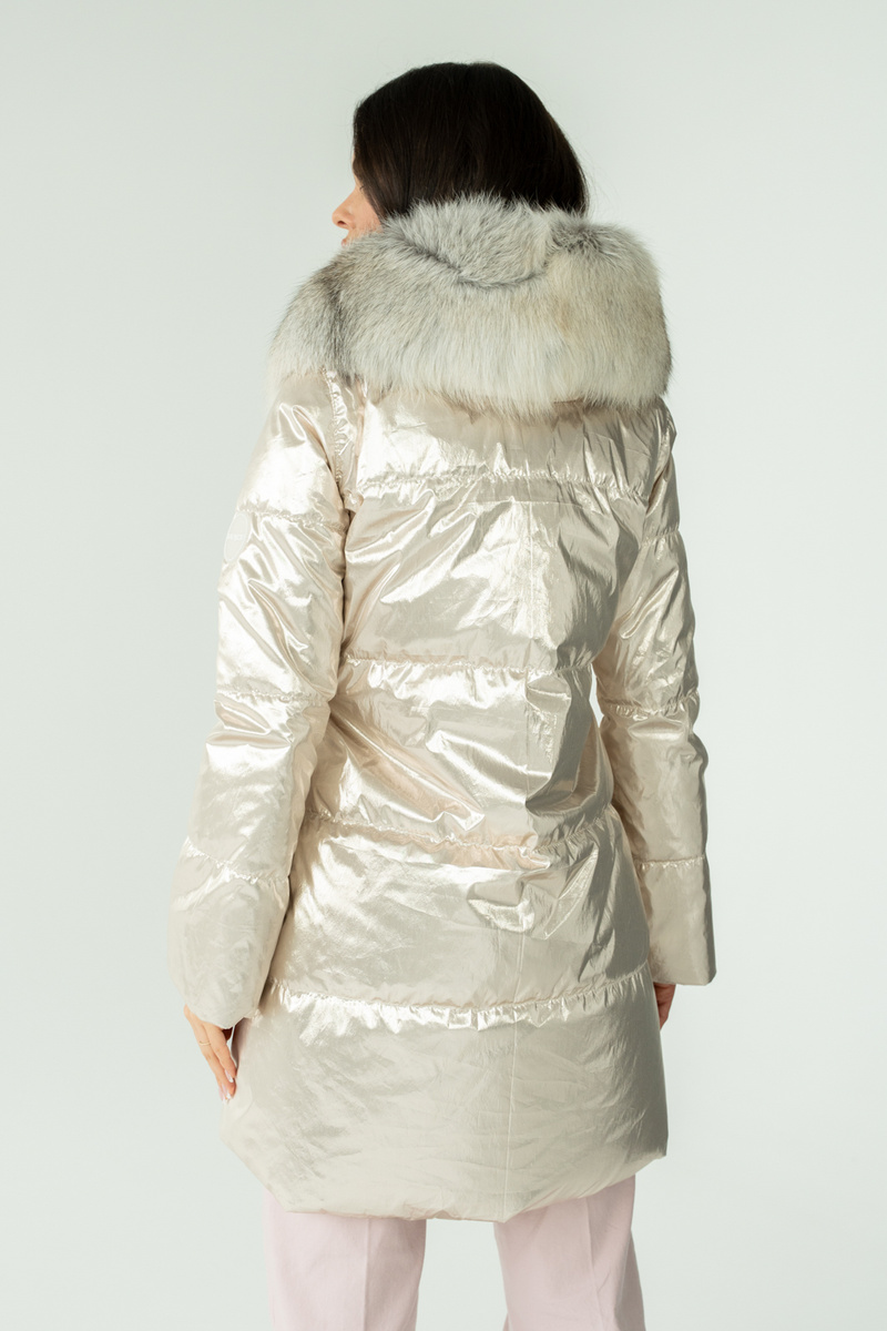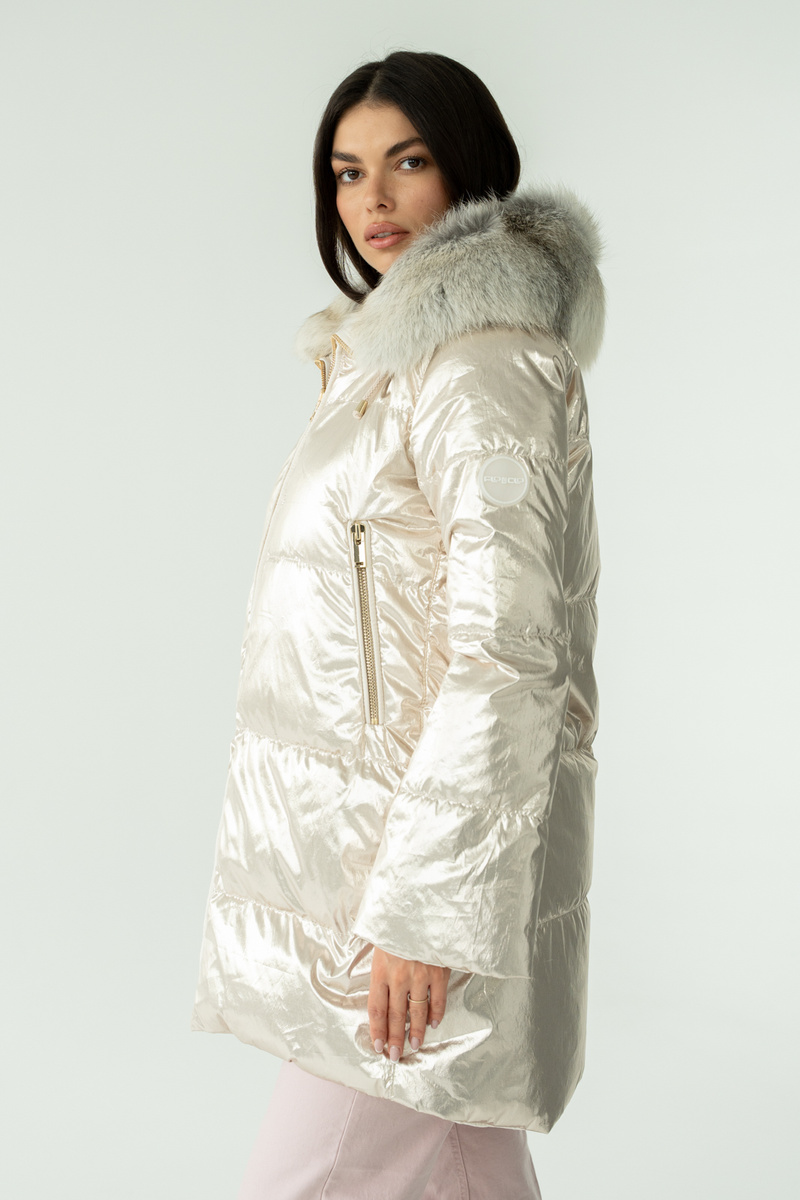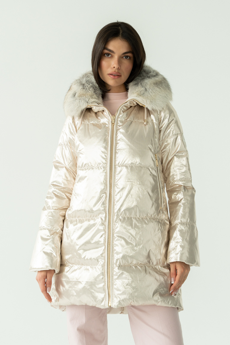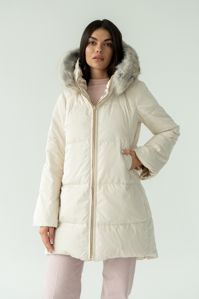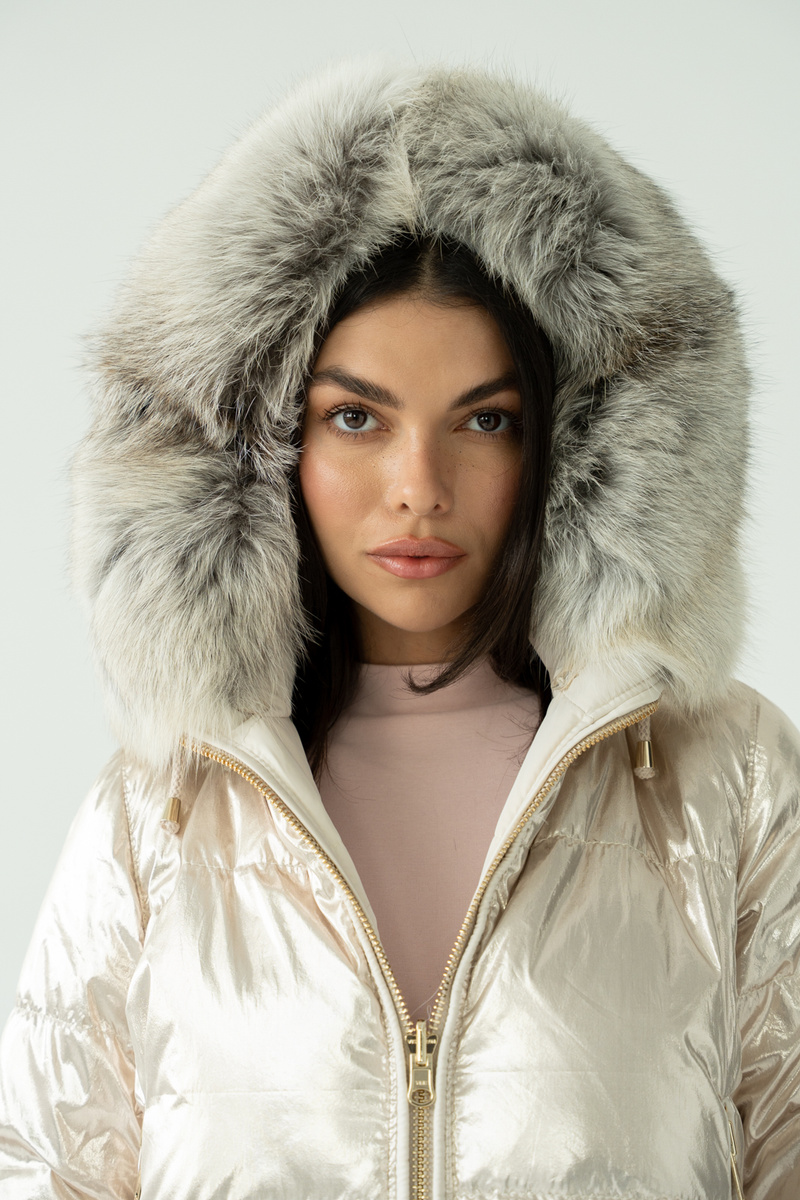 - Luksusowa dwustronna i wyjątkowo ciepła kurtka stworzona z myślą o kobietach, które cenią elegancję i komfort w sezonie zimowym. Wygodny i efektowny fason w odcieniu złotej perły bogatym futrzanym obszyciem na kapturze i mankietach.