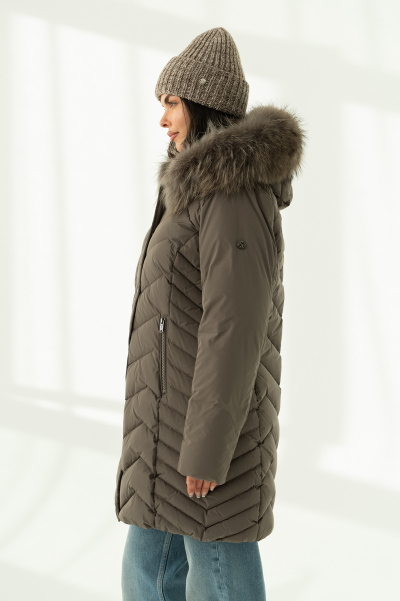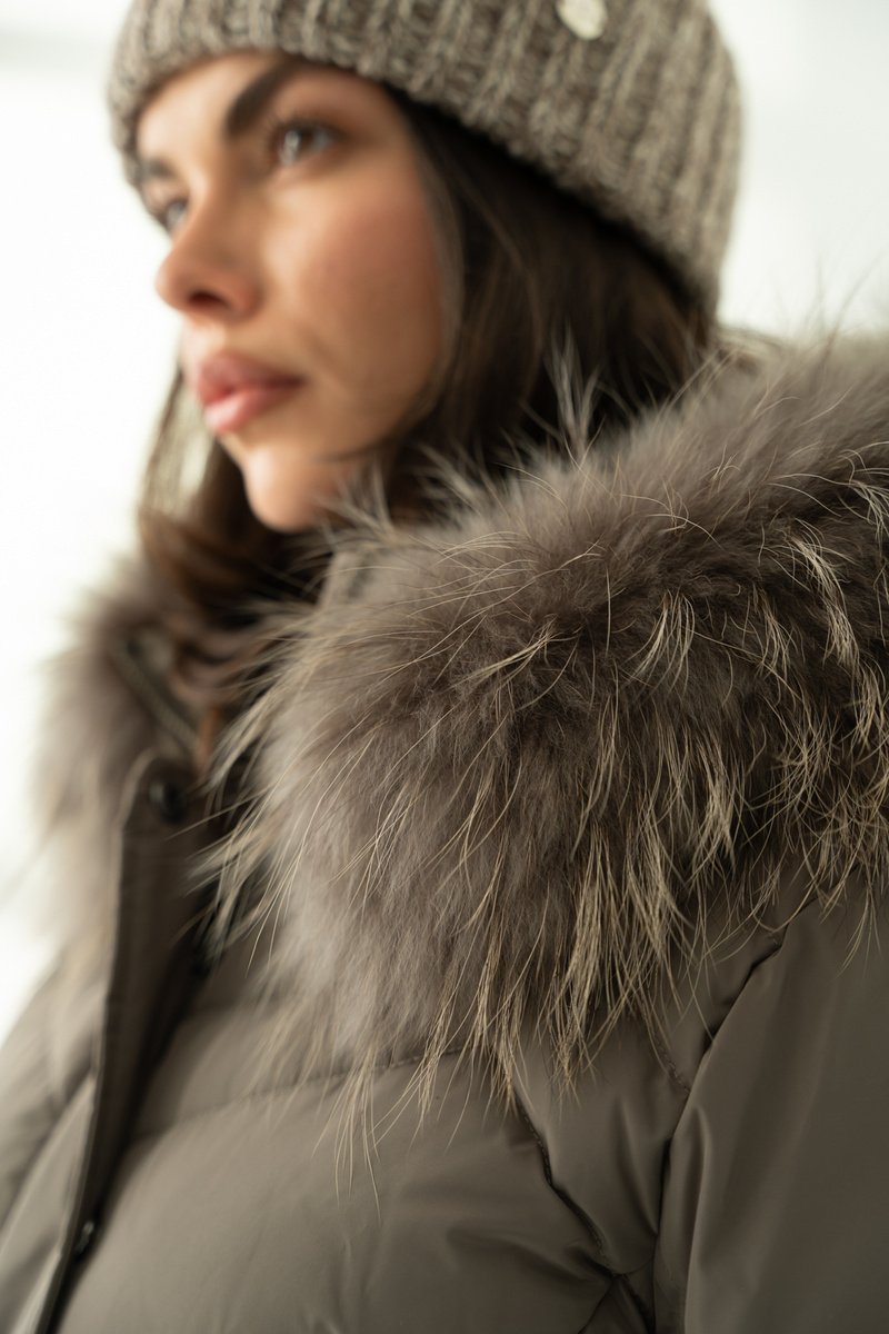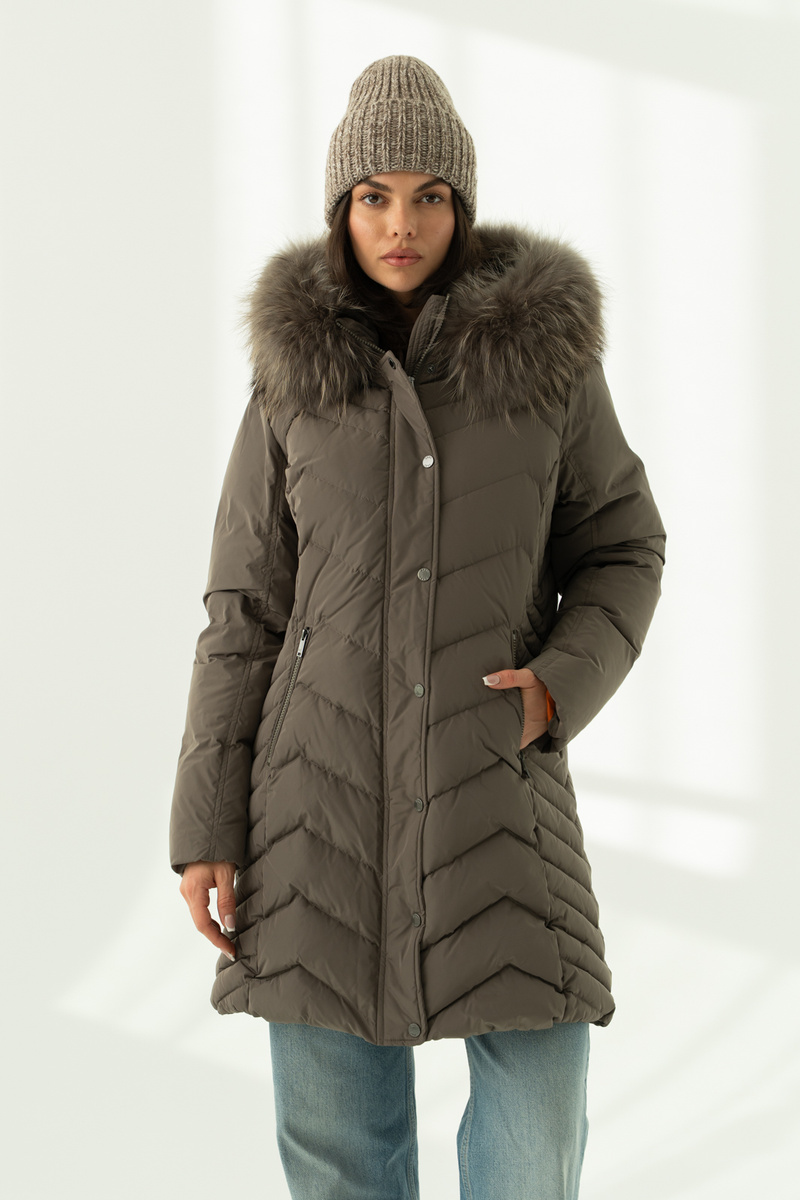 Kurtka puchowa Hera z kapturem w kolorze taupe