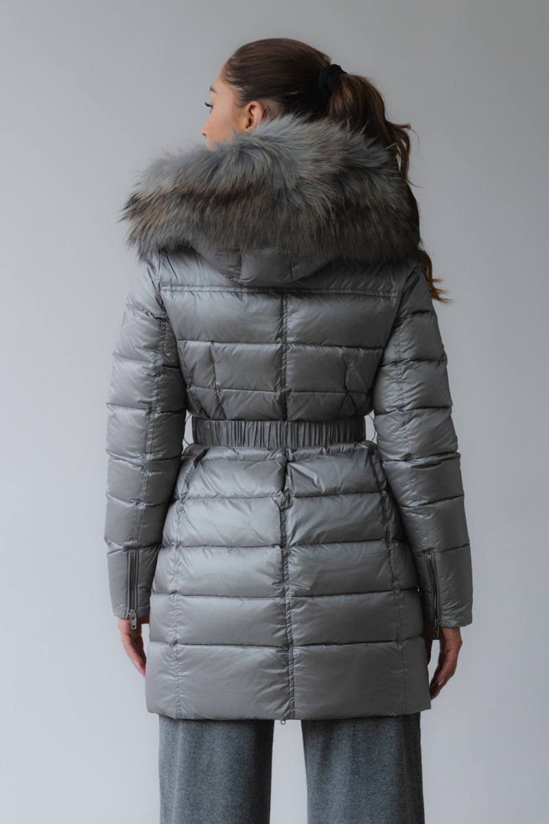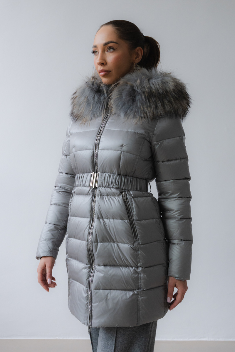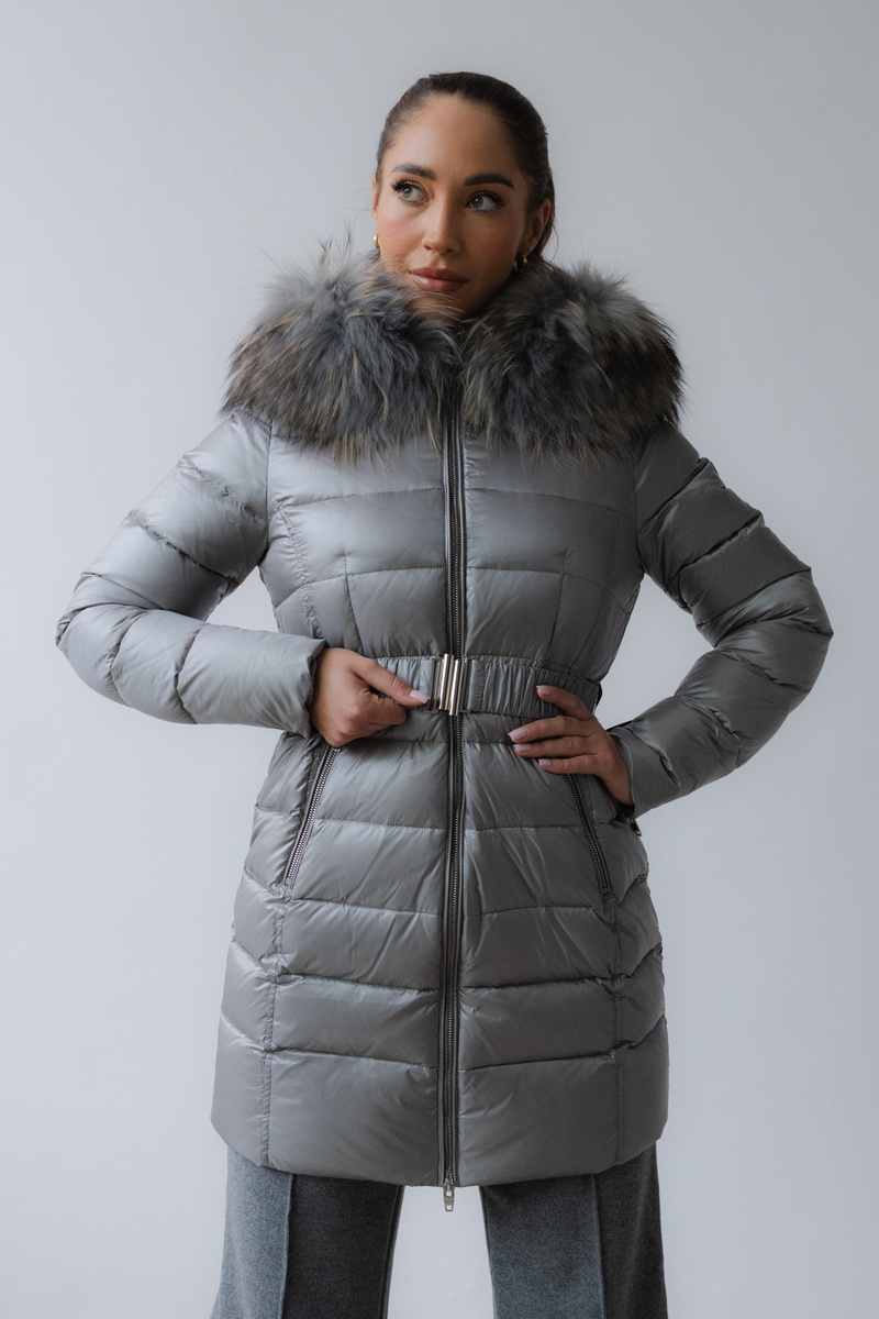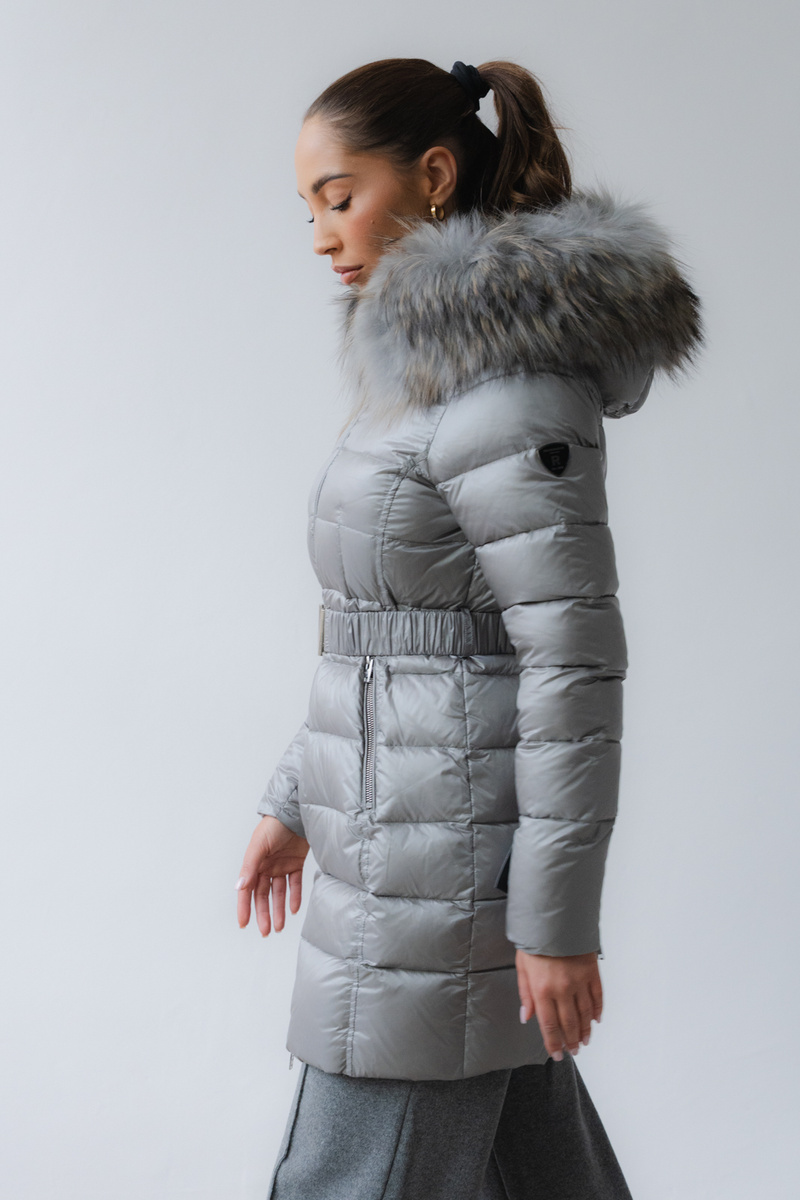 - Puchowa kurtka Ammy szweckiej marki Rock&Blue wykonana z najwyższej jakości materiałów w kolorze jasnej szarości. Wygodny i efektowny fason w najmodniejszym kolorze tego sezonu z pięknie podkreślona talią.