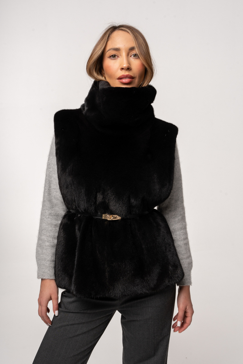 Wysoki, otulający golf / stójka skutecznie chroni szyję przed chłodem, zapewniając komfort noszenia nawet w niższych temperaturach. Minimalistyczny fason sprawia, że golf z futra norki doskonale sprawdzi się zarówno w eleganckich stylizacjach, jak i w nowoczesnych zestawach casualowych. Noś go do płaszczy, kurtek lub bez niczego solo też świetnie sie prezentuje. Pasek nie jest oferta sprzedaży i golf nie jest wysyłany z paskiem.